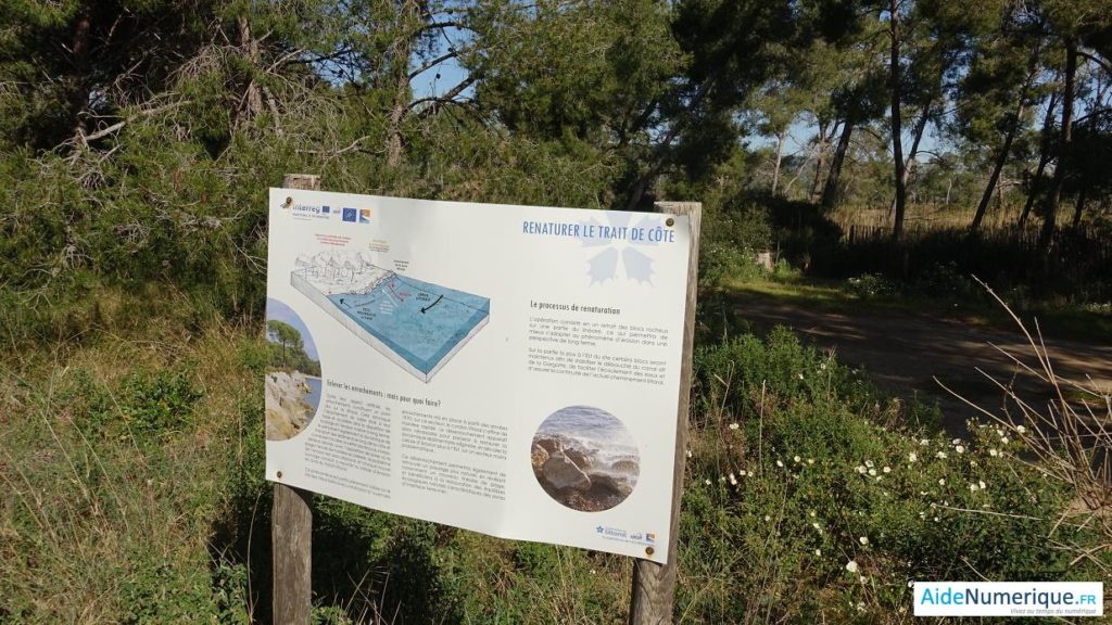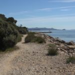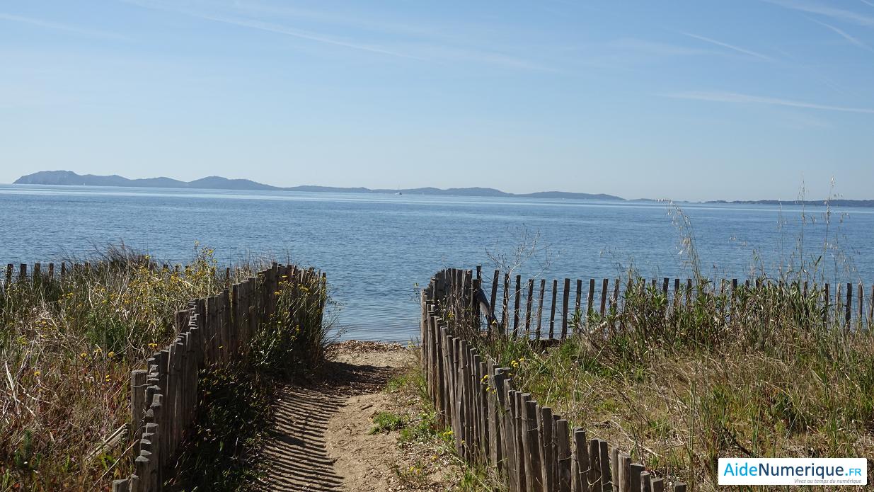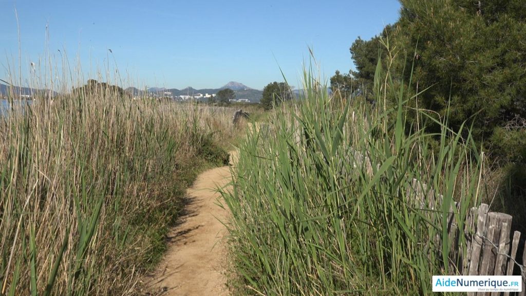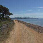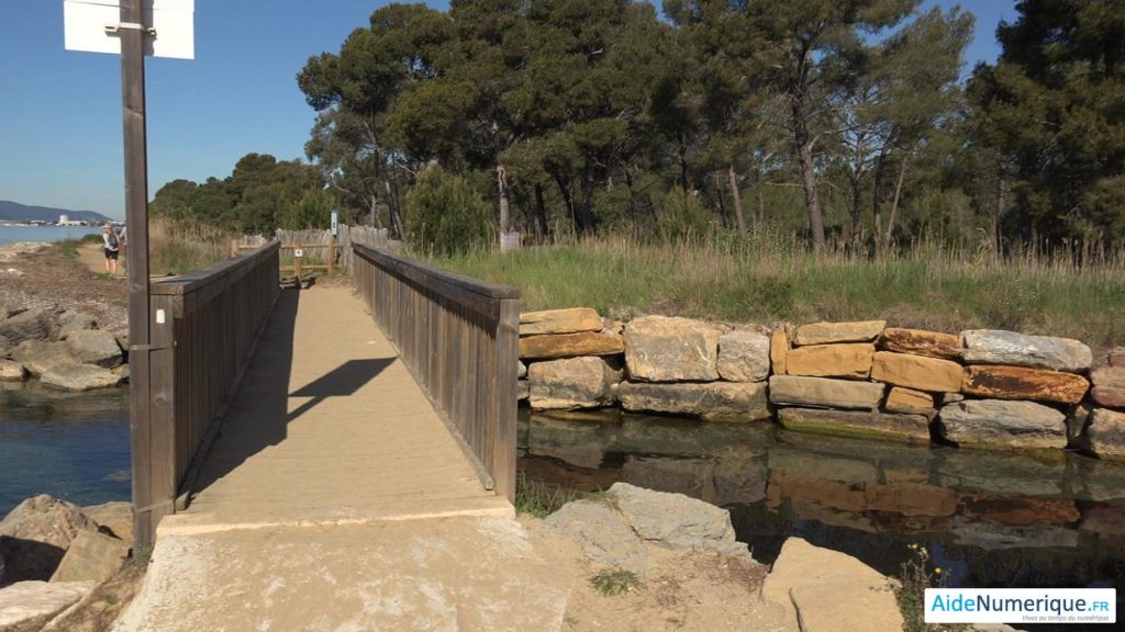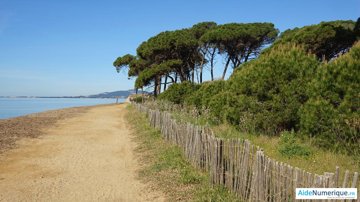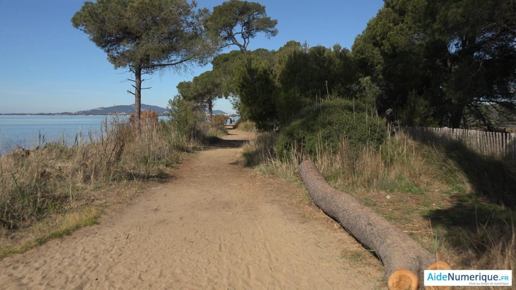 Continuer sur l’avenue jusqu’à la barrière. Passer la barrière, entrée sur la pinède du Bastidon . Prendre à gauche puis continuer sur ce large chemin en direction de la mer. Passage devant un blockhaus. Arrivée près de la mer et de la plage Miramar, le chemin tourne à droite. Passage sur une large bande de sable en direction d’un nouveau blockhaus. En face de nous, l’île de Porquerolles. Passage sur un petit pont. Quittez le sentier près de la mer. Sur la droite, début des vieux salins d’Hyères. Prendre à droite, sentier balisé tracé jaune. Un large chemin pour balader. Vue sur l’île de Porquerolles. Toujours un large chemin ombragé. Sur la droite, les vieux salins. Par moment, le chemin se rapproche de la mer. Les vieux salins. Panneau d’information sur le trait de côte. Le large chemin se transforme en sentier. Panneau d’information sur les vieux salins d’hyères. Nous suivons le balisage tracé jaune. le sentier devient un petit sentier. Toujours la mer accessible sur notre gauche. Retour sur le petit sentier des salins. Une plage naturisme pour les amateurs. Vue sur le parking de la plage des salins à Hyères. Arrivée à une barrière, la franchir puis prendre à gauche. Direction la mer. Retour à la plage Miramar en longeant la mer. Un chemin facile à suivre. De beaux endroits pour la saison estivale. Retour au petit pont, le franchir. Continuer toujours tout droit en direction de la page Miramar.