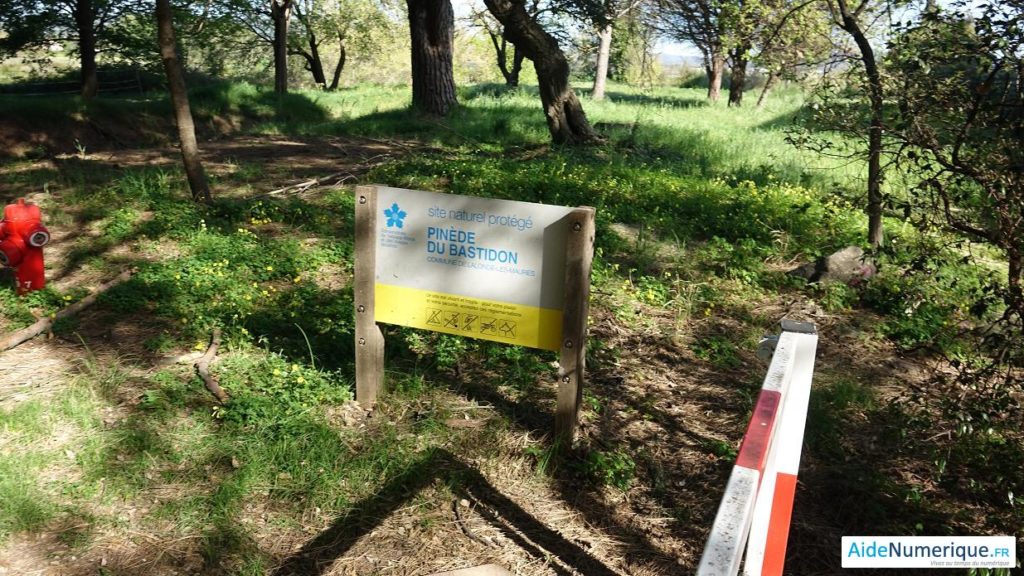Passer la barrière, entrée sur la pinède du Bastidon .