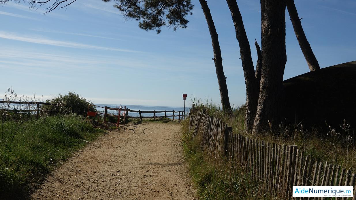 Prendre à gauche puis continuer sur ce large chemin en direction de la mer.
