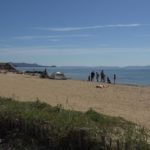Arrivée près de la mer et de la plage Miramar, le chemin tourne à droite.