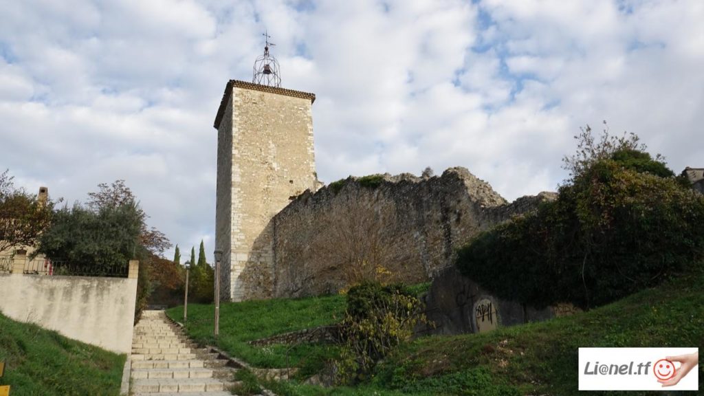 Passage devant la porte Saint-Sébastien qui est (avec celle d’Ayguières) l’un des deux dernières portes de la ville fortifiées du XIVe siècle.