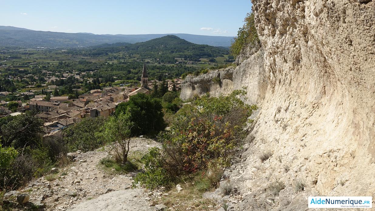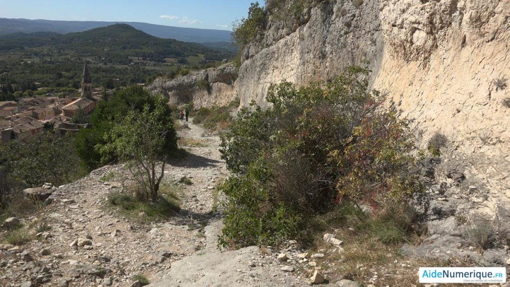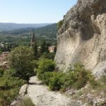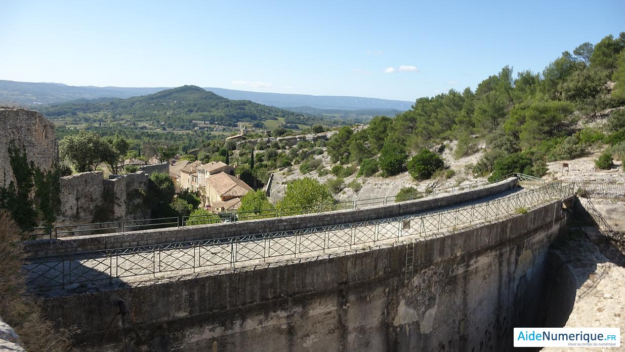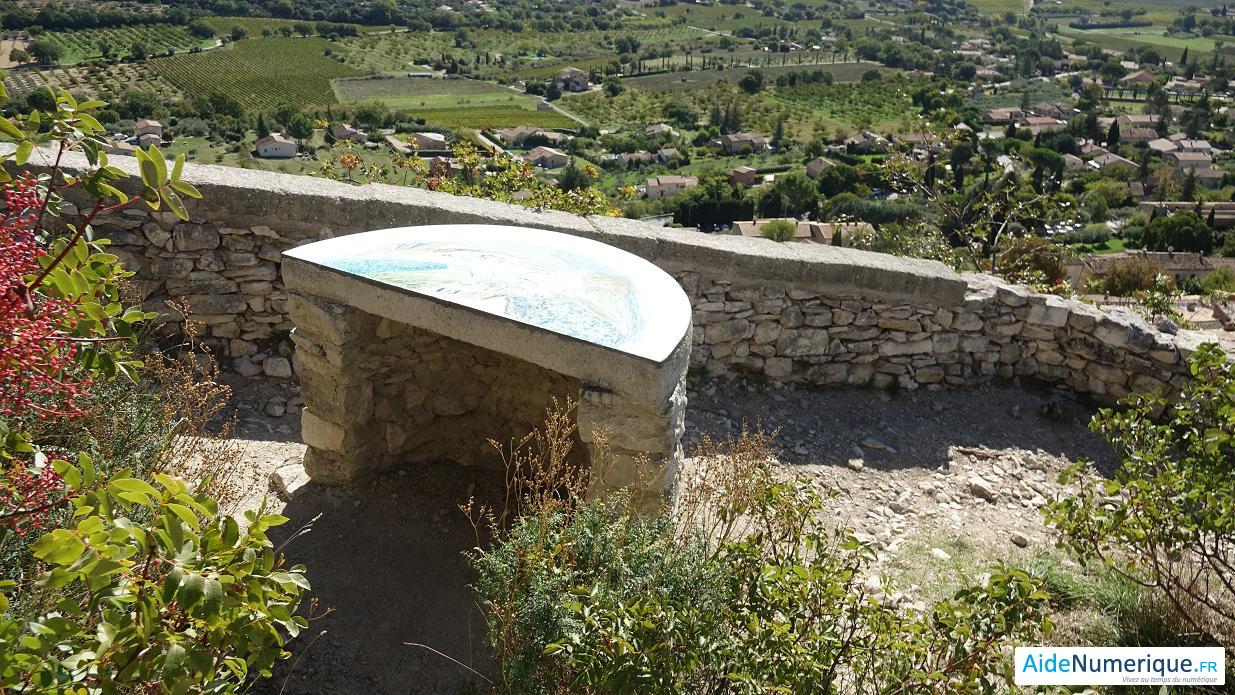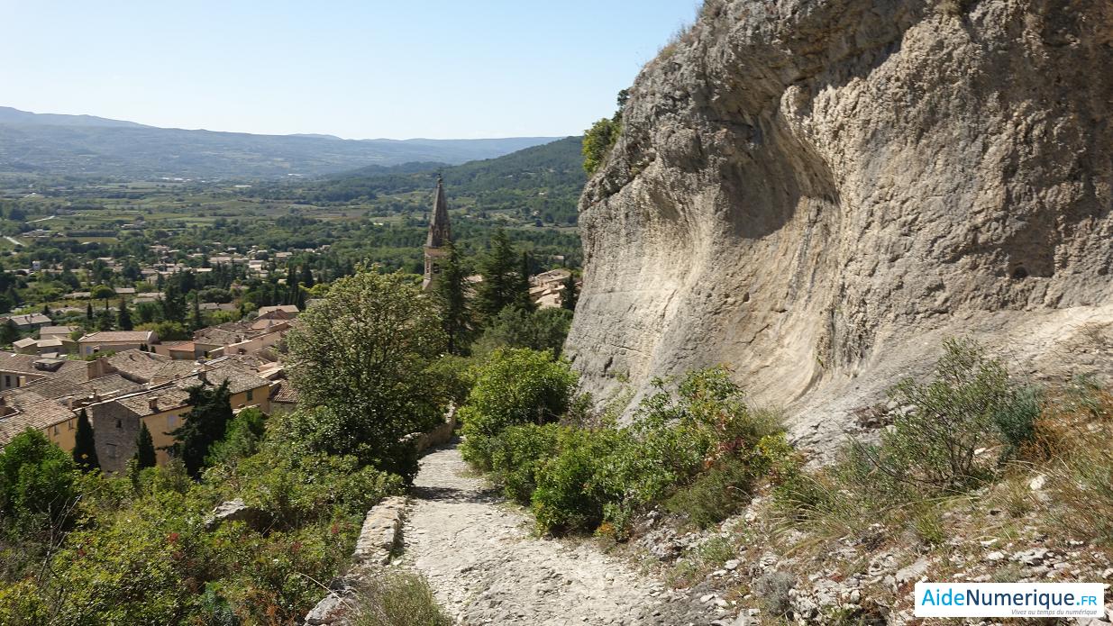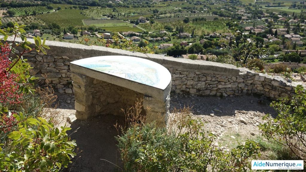 Le village de Saint-Saturnin lès-Apt est perché sur un éperon rocheux, ce qui offre des vues superbes sur le Luberon, les Alpilles … Le village trouve ses origines au Xe siècle et fut sous la seigneurie des Agoult vers 1190, puis d’autres seigneurs, etc. Il a évolué au fil des siècles avec des constructions médiévales, des remparts, des agrandissements aux XIIᵉ, XVe, etc. La balade part du moulin à vent, passe à côté du barrage puis longe les anciens remparts et villages pour arriver à la chapelle castrale puis redescend dans le village pour passer le portail Ayguier et finir par arriver devant l’église Saint-Etienne (*1).
