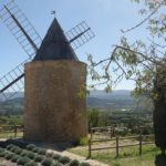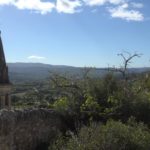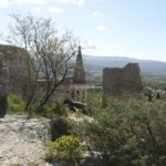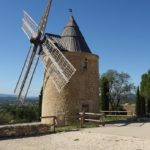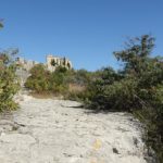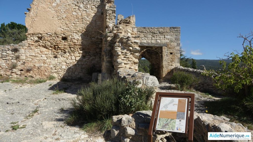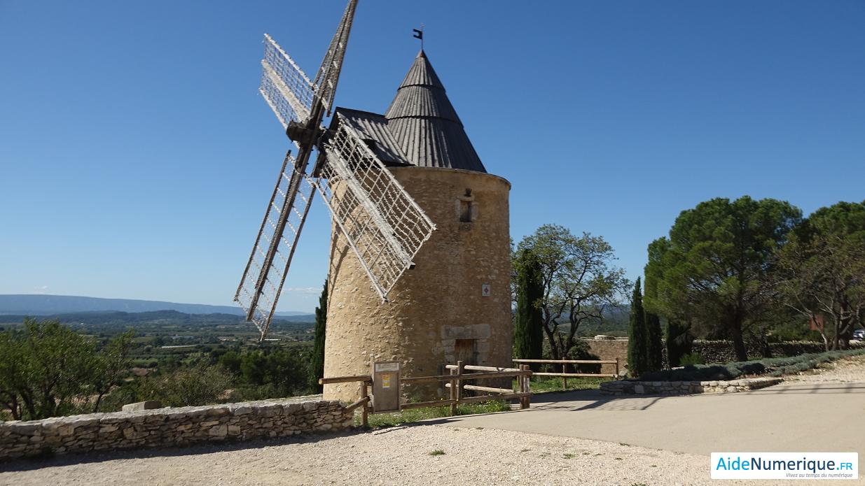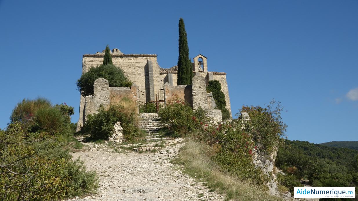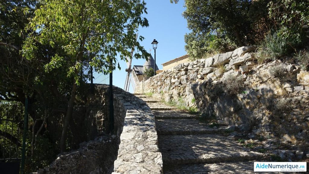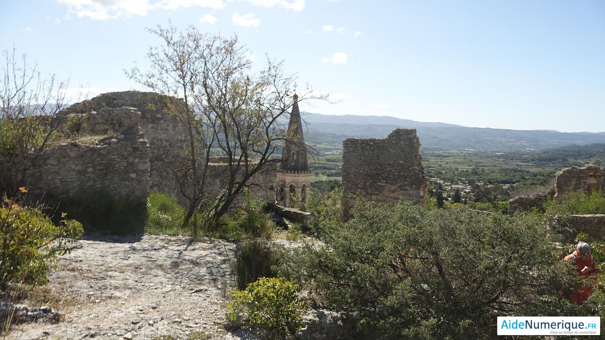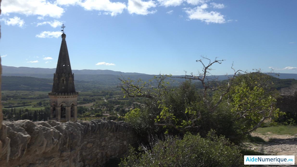 Le village de Saint-Saturnin lès-Apt est perché sur un éperon rocheux, ce qui offre des vues superbes sur le Luberon, les Alpilles … Le village trouve ses origines au Xe siècle et fut sous la seigneurie des Agoult vers 1190, puis d’autres seigneurs, etc. Il a évolué au fil des siècles avec des constructions médiévales, des remparts, des agrandissements aux XIIᵉ, XVe, etc. La balade part du moulin à vent, passe à côté du barrage puis longe les anciens remparts et villages pour arriver à la chapelle castrale puis redescend dans le village pour passer le portail Ayguier et finir par arriver devant l’église Saint-Etienne (*1).